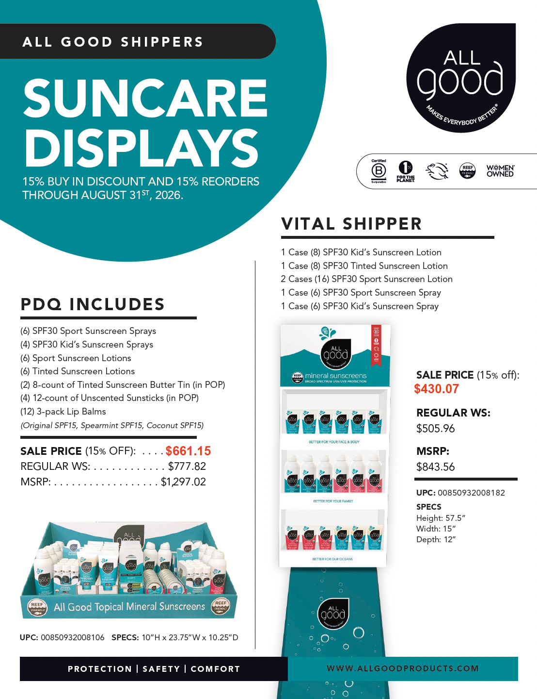 15% off Shipper Pre-Packs & 15% off ALL SPF reorders through August 31st, 2026 with a Spring Shipper order.